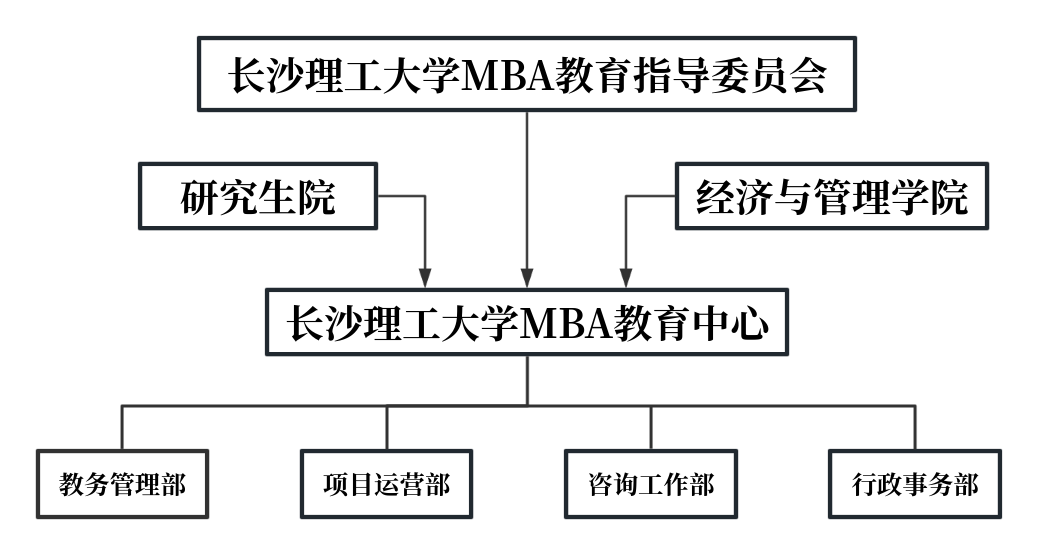 2008年5月,报请学校同意,经济与管理学院成立了永利集团88304官网MBA教育中心,下设招生就业部、教学及培养部、学生管理及职业发展部、办公室四个部门,目前中心有人员8人。学院委任了中心主任、中心执行主任。2008年学院成立了以经管院院长为主任、研究生主任为副主任、学院教授为委员的院MBA教育指导委员会。2010年9月,成立以校党委书记为主任、湖南省国有资产管理委员会主任、主管研究生的副校长为副主任,政府领导、企业家、研究生部主任、专家教授为委员的永利集团88304官网MBA教育指导委员会。在管理上,MBA教育中心接受学院领导和研究生部指导,独立开展工作,有权按照培养目标在全校、校外聘请任课教师、指导老师。MBA管理制度完备,培养机构高效运转,永利官网MBA教育发展迅速。