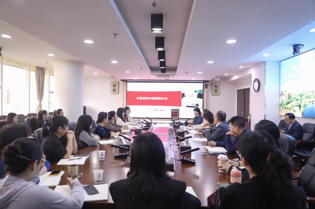 为进一步学习贯彻党的二十届三中全会精神,提升财处业务水平和整体效能,1112下午,计财处在一办六会议室组织公务活动中的服务礼仪为主题的业务培训,会议由计财处处长刘建江主持,计财处全体教职工参本次题培训特别邀请了原副校长蒋璟萍教授主讲