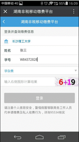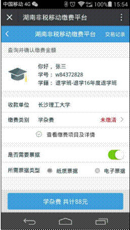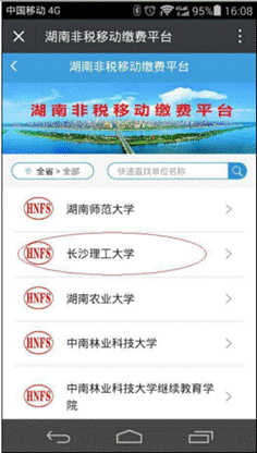 3、进入湖南省非税移动缴费平台-》教育-》选择学校(永利集团88304官网)-》进入登录界面,输入学生姓名,学号栏可以输入学号或者身份证号,在此选择缴费类型,缴费类型有“学杂费”、“重修费”、“报名考试费”、“其他费用”。缴费时请选择相应缴费类型。