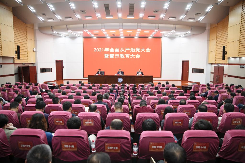4月21日上午,永利官网2021年全面从严治党大会暨警示教育大会在云塘校区图书馆报告厅举行。校党政领导班子成员、副处级以上干部、专兼职纪检监察干部参加会议。校党委书记付宏渊和校党委副书记、校长曹一家出席会议并讲话,校纪委书记徐桂林作纪检监察工作报告,校党委副书记蒋昌波作“以案促改”警示教育讲话。会议分两个阶段,先后由曹一家和徐桂林主持。