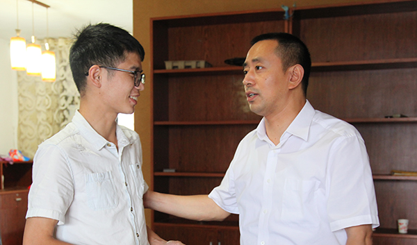 6月6日下午,高考前夕,正是组考工作紧张忙碌的时候,省委教育工委书记、省教育厅厅长蒋昌忠,省委教育工委委员、省教育厅党组成员徐伟和省委教育工委组织部、宣传部有关负责同志抽出时间,来到永利官网亲切看望慰问邹勇松同学。蒋昌忠详细了解了他目前的身体状况,以师长的身份寄语邹勇松:“你以坚强的意志走出病魔的折磨,以阳光的心态面对学习、生活、工作,有理想、有追求,非常难能可贵,不要苛求自己,不要把身体搞垮,这是我们所不希望看到的。今天代表省教育厅、省委教育工委专门来看望你,看了你的事迹很感动,有你这样优秀的学生,这样优秀的共产党员,是我们教育战线的光荣,是全体学生的榜样,是大家的骄傲。”