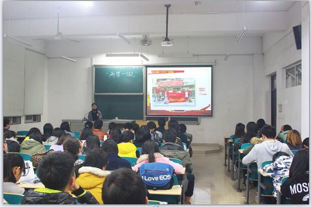 潘枝花围绕何为“讲奉献”、何为“有作为”作出了阐释:奉献,是共产党员被赋予的与生俱来的含义,讲奉献,就是要甘于付出;有作为,就是要勇于担当。担当就是责任,担当就要吃苦,就要任劳任怨。大学生身肩历史的重担,必须牢固树立好责任意识,担当意识和奉献意识,在同学中树立好吃苦耐劳、勇为先锋的典范。