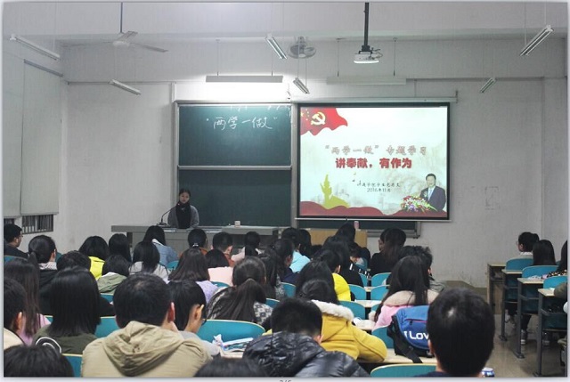 1117日晚,计算机与通信工程学院学生党员在云塘校区理科楼A102开展“两学一做”第四专题学习研讨会。会议由学生党总支副书记潘枝花主持,各支部围绕大学生党员如何做到“讲奉献、有作为”展开专题研讨。计通学院全体学生党员参加了本次集中学习。