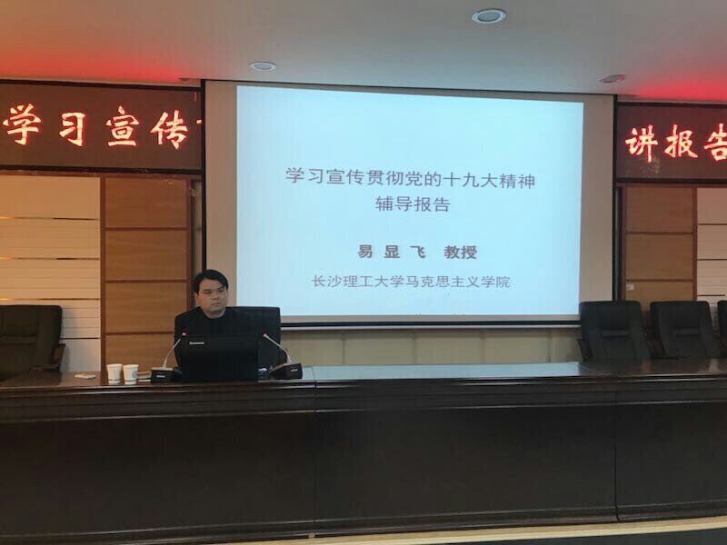 12月5日下午,学校“学习宣传贯彻党的十九大精神宣讲团”成员、马克思主义学院党委书记易显飞教授来计通学院为全体党员作党的十九大精神宣讲专题报告。院党委书记方琼主持报告会。