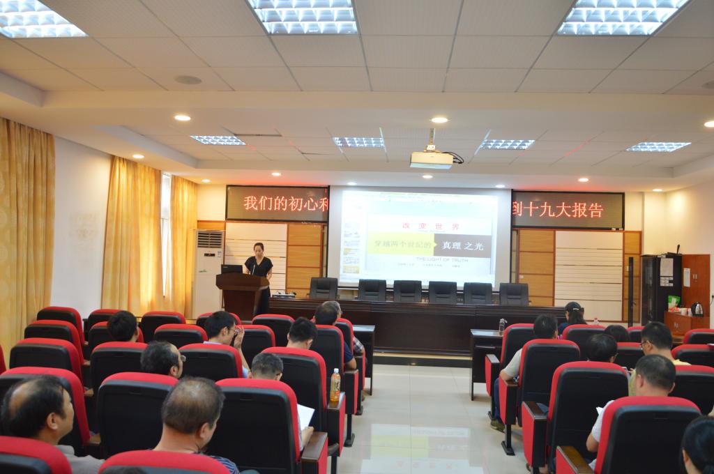 刘教授以“我们的初心与使命,从《共产党宣言》到十九大报告”为主题,怀着崇敬的心情为我们阐述了《共产党宣言》这部有着深刻历史意义的宣言,不仅对当时资本主义社会中的阶级对立和斗争进行了深刻的分析,而且为无产阶级的斗争指明了方向;马克思和恩格斯的这部心血,即使是在二百多年后的今天,对我们分析和理解当今国际政治经济局势以及我国社会主义的发展,仍旧有着深刻的借鉴和指导意义;《共产党宣言》文笔之优美、文章逻辑之严谨,内容概括之强劲,语言叙述之严密,既可以让我们把其当做语文文章训练来阅读,又可以让我们更为理性的思维去分析其真理所在。由此,刘教授层层分析出了“我们的初心与使命”在哪里,倡导所有党员重温《共产党宣言》、认真学习党的十九大精神,深刻领会其政治意义、历史意义、理论意义、实践意义,以新的气象、新的作为创造无愧于新时代的新业绩。