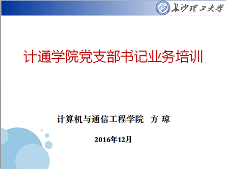 为深入学习贯彻党的十八届六中全会精神,推进学院“两学一做”学习教育深入开展,进一步加强基层党组织建设,提高基层党支部书记的业务素质和履职能力,充分发挥基层党支部的战斗堡垒作用,根据2016年学院党政重点工作安排,学院于1213日举办了2016年党支部书记培训班,学院教工党支部换届后的新任支部书记参加了培训,培训由学院党委书记方琼主持。