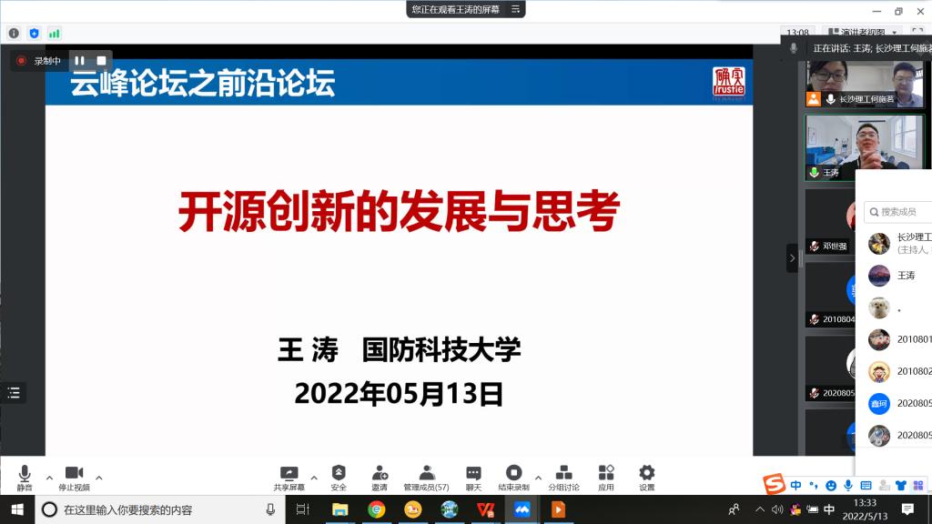 王涛副研究员以“开源创新的发展与思考”为主题介绍了开源软件的基本概念、历史以及未来的发展等问题进行了介绍。开源已成为科技创新的重要模式,并列入国家“十四五”规划纲要。此次报告中王涛老师围绕开源是怎么发展起来的、开源为什么能获得成功、存在的局限与调整是什么、我们怎么发展等问题,从开源创新的缘起与发展、开源创新背后的机理与机制以及开源创新的局限与发展思路三个方面向参会老师进行了介绍。同时王涛副研究员也和参会的师生进行了深入的探讨和交流。
