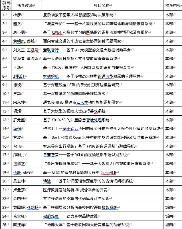以下项目类型均为创新训练项目。