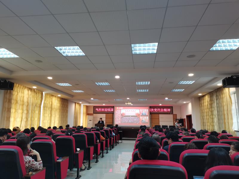 5月25日下午,学校党委委员、副校长钱国平在理科楼B311为我院师生宣讲学校第四次党代会精神,学院党委书记刘宏伟主持报告会,全体教职工及学生代表参加。