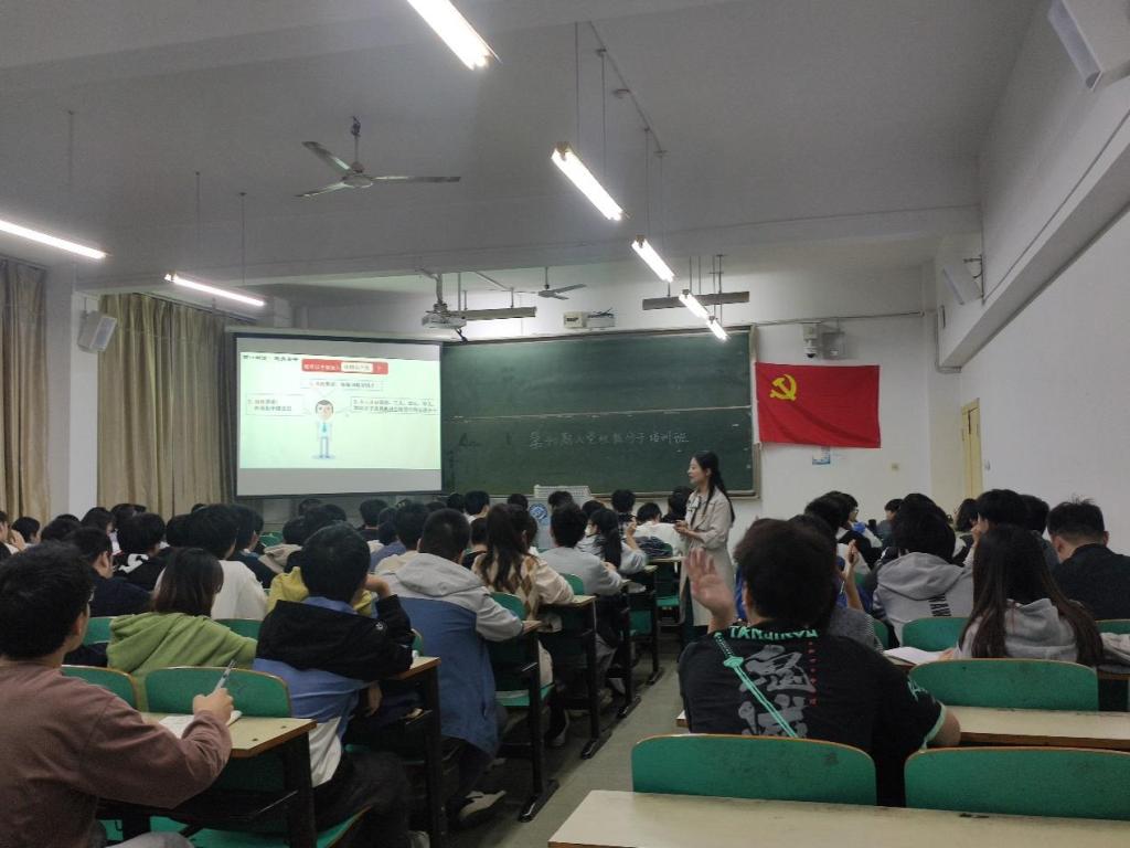 10月26日晚,计通学院分党校于金盆岭校区6号教学楼308举行了入党积极分子培训班开班暨第一讲理论课,本次开班仪式由党校小组负责人曹文彪负责组织,开班第一课由计通学院院团委书记潘枝花进行主讲,共有88名入党积极分子参加此次的培训班。