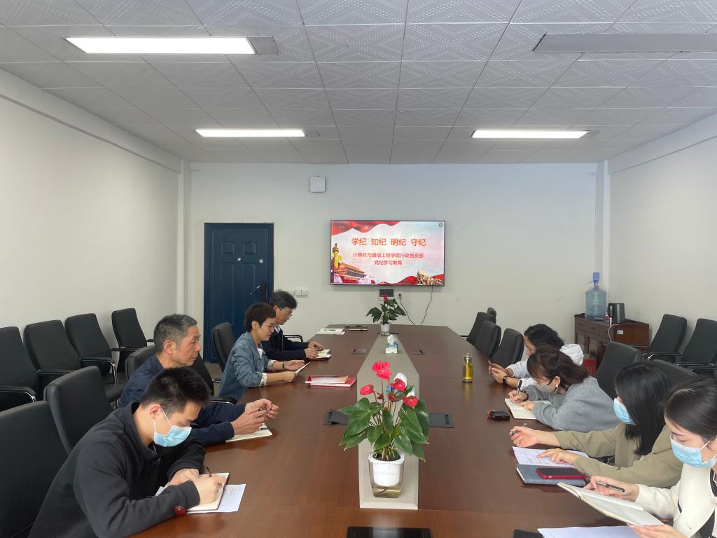 计通学院行政党支部于4月23日9号教学楼2-4会议室组织开展了“树牢纪律意识,严守纪律底线”主题党日活动,对新修订的《中国共产党纪律处分条例》进行了专题学习。