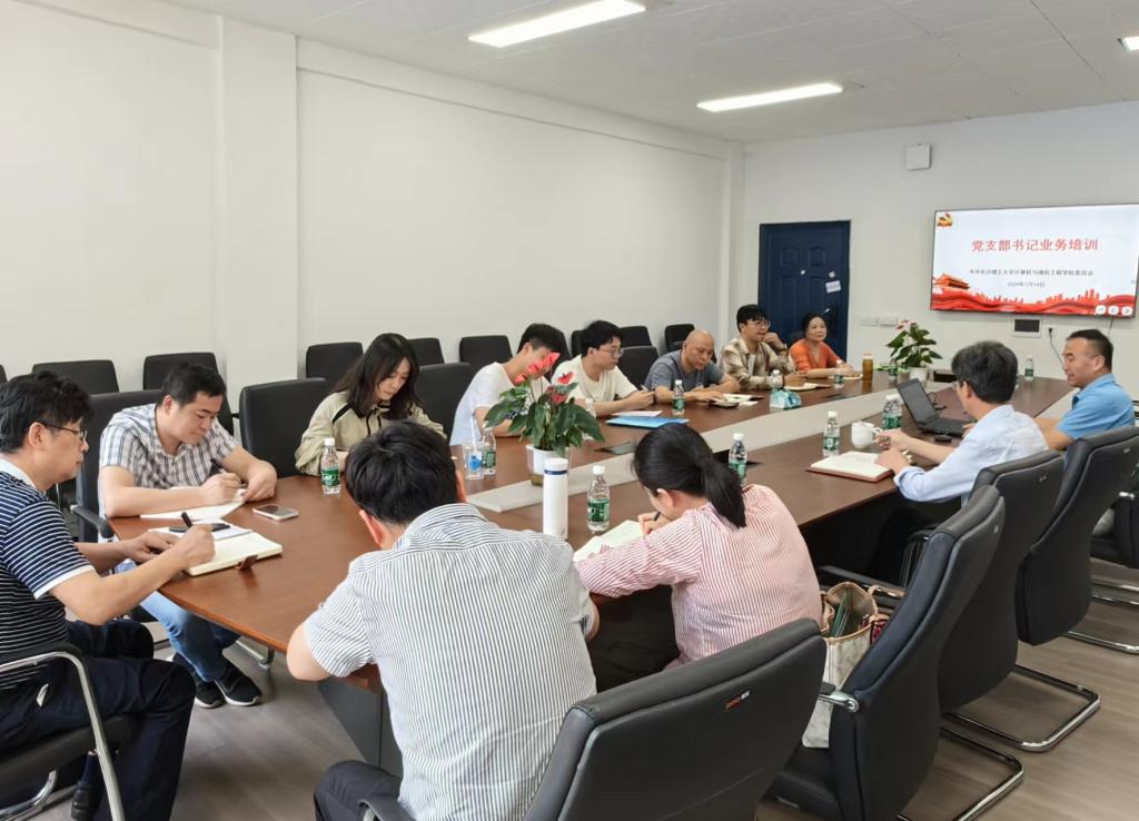 5月14日下午,计算机与通信工程学院在金盆岭校区九号教学楼2-4会议室组织开展党支部书记培训,土木工程学院党委书记江河主讲,学院党委书记刘朝辉主持。