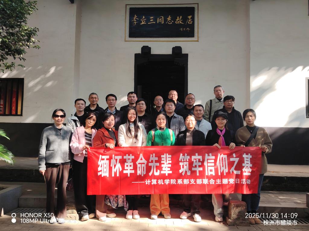 2025年11月30日,计算机学院网络工程系党支部、计算机应用系党支部和实验中心党支部全体党员赴醴陵市李立三故居,开展缅怀革命先辈,筑牢信仰之基主题党日活动。此次活动旨在通过实地参观学习形式,引导广大党员教师从革命先辈的光辉事迹中汲取精神力量,坚定理想信念,赓续红色血脉