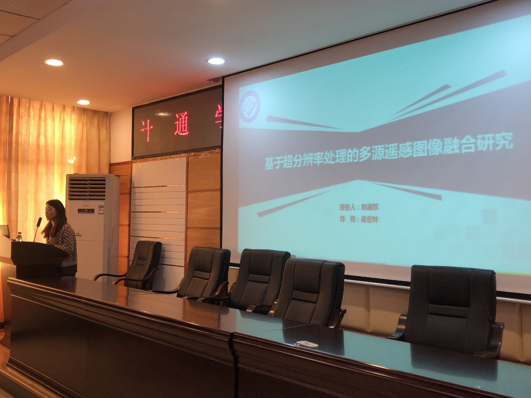 首先是伍悠同学主讲的“基于相关滤波和特征融合的目标跟踪算法” 研究。 伍悠同学从目标跟踪的应用角度切入,提出目标跟踪当前存在的难点—遮挡、光线、动态性以及相似性。结合多特征和动态学习等方法,伍悠同学提出了一种快速目标跟踪器,能够有效提高目标跟踪的效果。接下来是赵淑珍同学主讲的关于“超分辨率处理的多源遥感图像融合”研究。赵淑珍同学通过诙谐的图片,先向在座同学讲述了什么是超分辨率。赵淑珍同学讲到,多源遥感图像融合相比于单源,能表现出更多的特征,对场景的描述更加准确,有助于定位识别和后期分类。最后是由李捷同学主讲“基于低秩张量补全的图像修复”研究。李捷同学讲到,低层计算机视觉的问题是逆向的,因为这些问题要求根据从三维到二维变换后的输出来进行重构。考虑到逆问题往往是不适定的,李捷同学结合低秩张量来修复图像,能够很好的刻画图像高维数据中复杂的本质结构,利用已知的数据元素恢复丢失的元素。