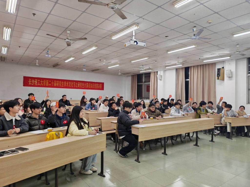 为丰富研究生校园文化生活,促进学术与实践深度融合,计算机学院于2025年12月5日晚上7点在金盆岭校区电苑楼2楼201教室成功举办了“计算机知识竞赛决赛”。一共13支队伍进入了决赛,研究生导师王建新受邀担任比赛的评委。