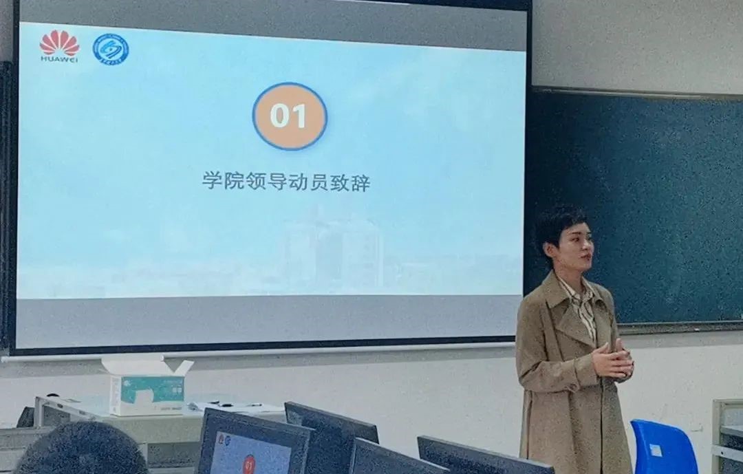活动伊始,党委副书记王觊婧表示,学校一直积极引企入校,致力于产教融合,助力构建鲲鹏计算产业生态优质发展环境。希望借此活动,能提升同学们对鲲鹏产业的认知,为将来成长为国家数字经济领域的优秀人才打下坚实基础。