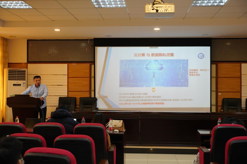 永利集团88304官网硕士生导师吴志强,针对云计算数据隐私保护技术问题,报告了云计算与隐私保护;密态云数据库、选择明文攻击与统计攻击;不经意随机访问机等内容。