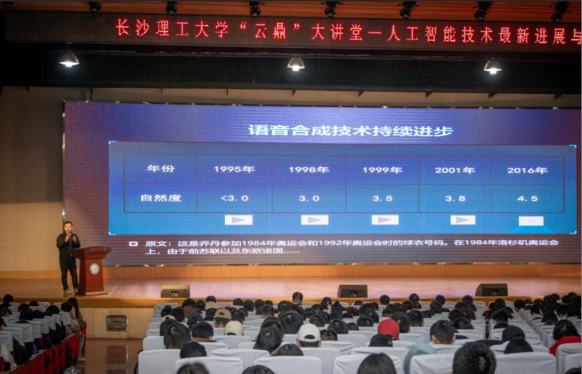 在智能时代的科技浪潮下,为了让同学们对人工智能有更加深入的了解,11月27日晚,计通学院于金盆岭校区五教大礼堂举办了“云鼎”大讲堂——人工智能技术最新进展与典型应用讲座。讲座由科大讯飞股份有限公司高级工程师贺胜主讲,计通学院院党委副书记王觊婧主持,各学院相关老师出席。