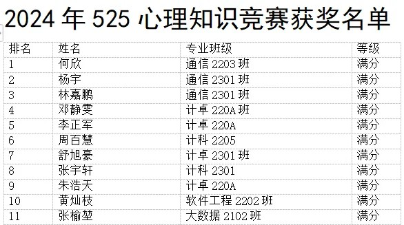 本次活动作为计通学院历年专业特色活动,由学院心理工作组制作答题小程序,各班心理委员发动组织线上比赛,报名参赛人数达380人,11名同学满分,127名同学成绩为“优秀”。
