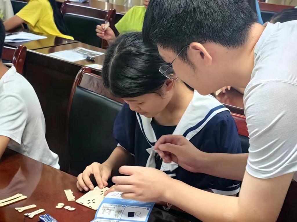 在自制电动机的课堂上,成员们首先通过将理论与常见生活现象相结合的方式,讲解了实验的基本原理;接着在保障安全的前提下,与慈爱园的孩子们一起动手搭建自己的电动机。活动过程中,成员们时刻关注孩子们的状态,并给予他们帮助和肯定。