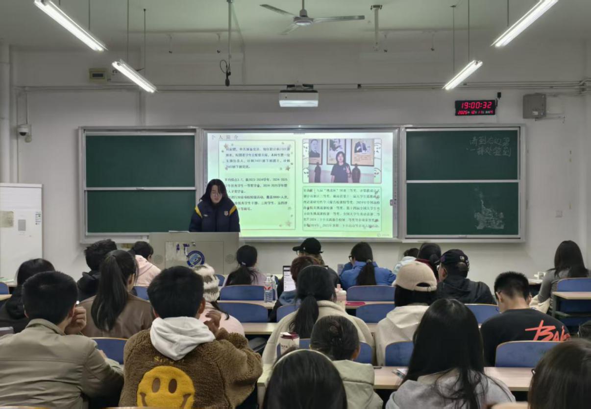 作为学业优异、能力突出的朋辈榜样,刘家熠结合自身担任院团委学生会轮值主席、计科2301班班长的实践经历,以实用技能赋能成长为核心展开授课。她从工作沟通技巧切入,分享沟通模板并结合真实案例演示事务协调方法;随后以智创杯等活动为实例,拆解活动策划与执行的全流程要点,细致传授时间把控、跨部门协作的实用技巧。同时,她还分享了平衡学业与工作的宝贵心得,鼓励同学们在服务集体的过程中锤炼综合素养。