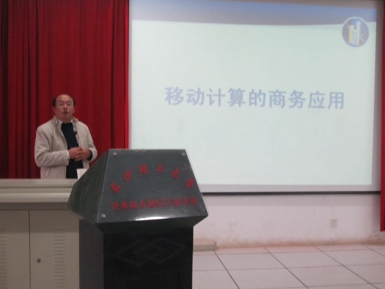 国防科技大学黄波博士应邀前来做了题为《移动计算及其在商务中的应用》的学术报告,就移动计算、云计算等当前热门的计算机与通信技术做了详细介绍。通过黄博士本场讲座,使得在座的研究生对现今的信息技术发展有了更全面的了解,更加明确了现在学习和科研的方向。