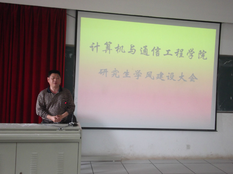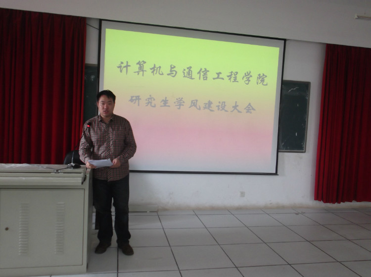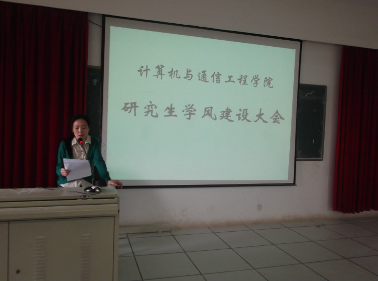 5月4日下午,计算机与通信工程学院在理科楼B311召开研究生学风建设大会。2012年是永利官网学风建设年,计通学院借此召开本次研究生学风建设大会。院长李峰,院党委副书记方碧波、副院长徐蔚鸿,研究生导师史长琼以及计通学院全体研究生出席了大会,由徐蔚鸿副院长主持。