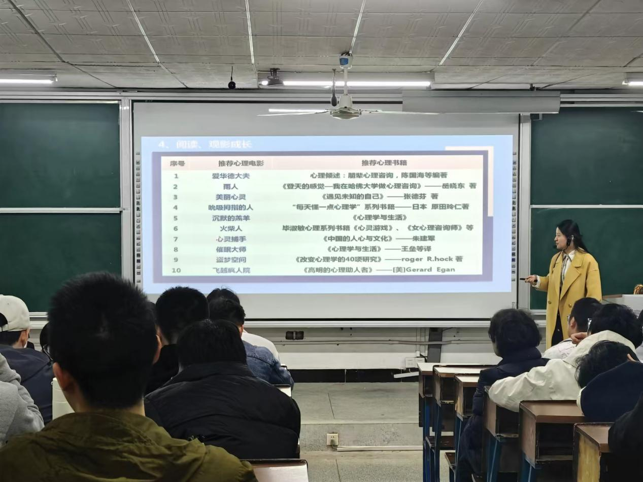 培训会上介绍了常见心理问题和精神障碍类别典型症状以及应对处理办法,传授了情绪ABC调适理论,推荐了心理成长类书籍、电影,普及了心理援助资源,如心理咨询中心和精神科门诊等,教会同学们科学认识心理问题,掌握心理保健知识,正确对待心理疾病,培养阳光积极的心态。