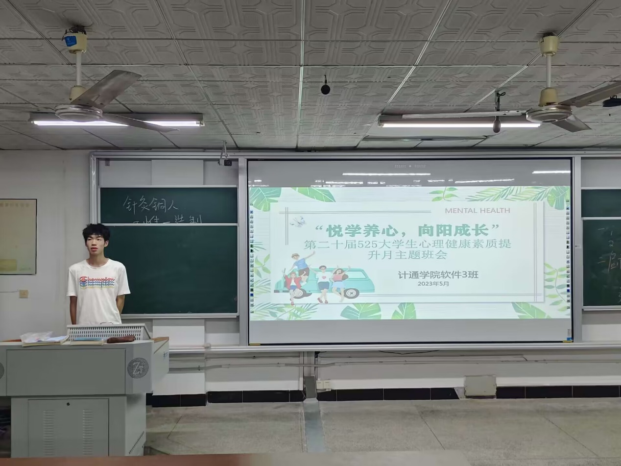 5月中旬以来,计通学院在金盆岭校区组织各班开展第二十届525大学生心理健康素质提升月主题班会——“悦学养心,向阳成长”,各班心委主持开展。