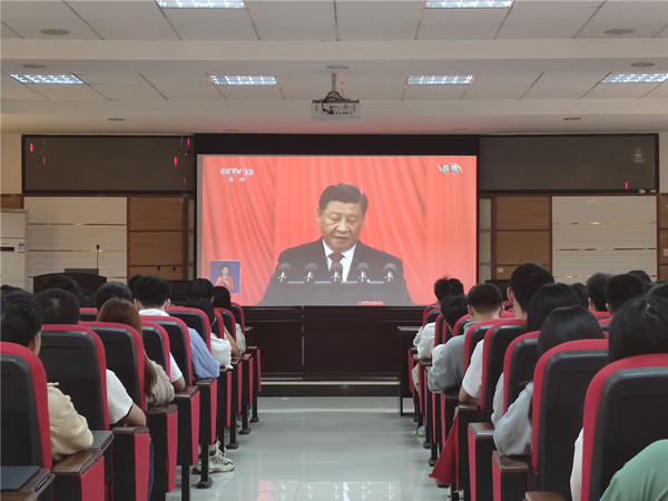 10月16日,中国共产党第二十次全国代表大会在北京隆重召开。学院党委书记孔伟红、院长张锦与全体领导班子、全体师生党员、入党积极分子共486人分别在校友中心、理科楼B311报告厅、理科楼B103、理科楼B502、理科楼B504会议室、理科楼B303教室集中观看了开幕会现场直播盛况,认真聆听了习近平总书记代表十九届中央委员会向大会所作的报告。
