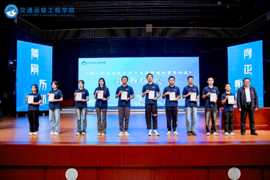 讲课结束时,刘朝晖为新生代表赠送了《深入学习习近平关于交通强国的重要论述》。