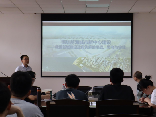 2023年5月15日上午,上海科瑞真诚建设项目管理有限公司董事副总经理,深圳前海国际城市新中心统筹协调咨询总负责人、深圳大鹏坝光国际生物谷“十四五”建设规划总负责人罗晟博士来我院指导交流,为师生带来了《深圳前海城市新中心建设——我国新城建设政府统筹的挑战、思考与实践》的主题讲座,讲座由高英力副院长主持。
