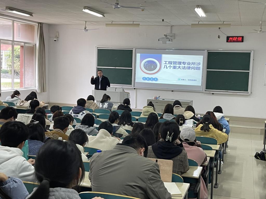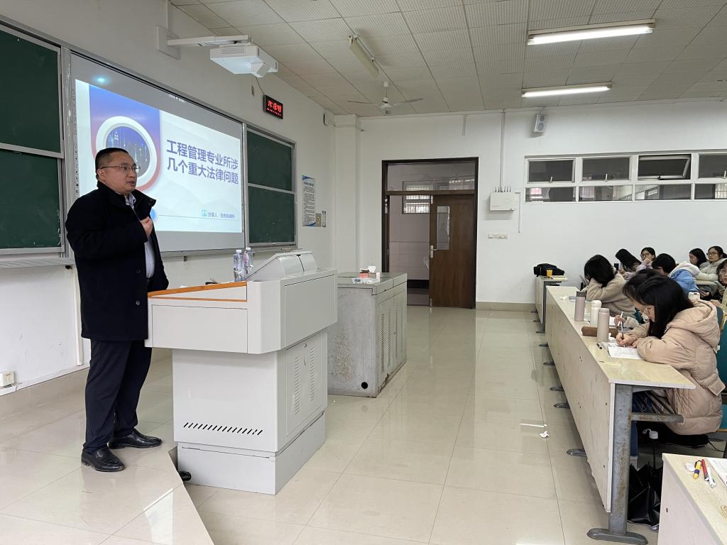 2023年329日下午,工程管理专业校外导师,湖南工总律师事务所主任、高级合伙人、首席律师张树森先生走进2020级工程管理本科生《建筑法规A》课堂,结合工程实践,给同学们上了一堂生动精彩的专题课。