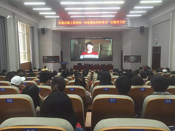 11月16号中午十二点半,交通学院于交通科技报告厅召开“向邹勇松同学学习”主题报告会。交通学院党委副书记田上、学工办全体老师出席,本科生和研究生共计200余人参加此次会议,会议由学工办彭笠主持。