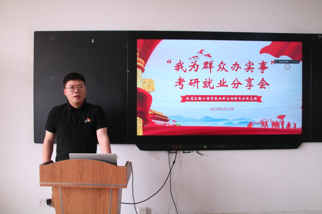 5月13日上午,交通运输工程学院本科生测绘专业党支部开展“我为群众办实事,考研就业分享会”主题党日活动。本次活动由交通学院本科生测绘专业党支部主办,长理测绘协会承办,共吸引了近百余名同专业的学生前来参加。