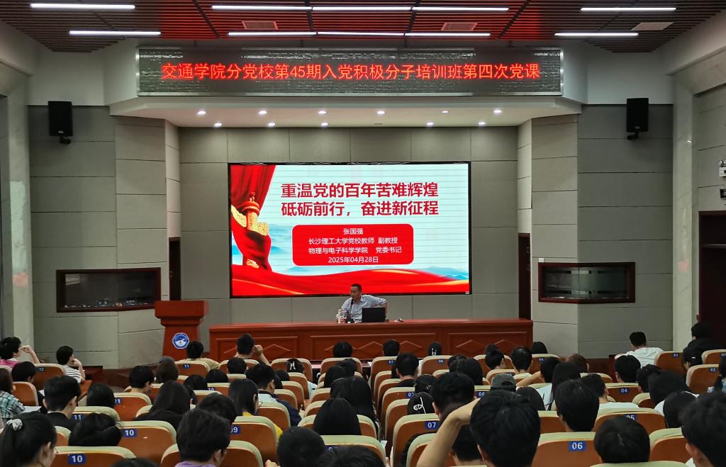 4月下旬,交通学院分党校组织开展了第四十五期入党积极分子理培训班的理论教学活动。交通学院学生党总支副书记肖敏强、马克思主义学院教授余乃忠、学校创业与就业指导处处长田上、物电学院党委书记张国强先后为本期学员授课。
