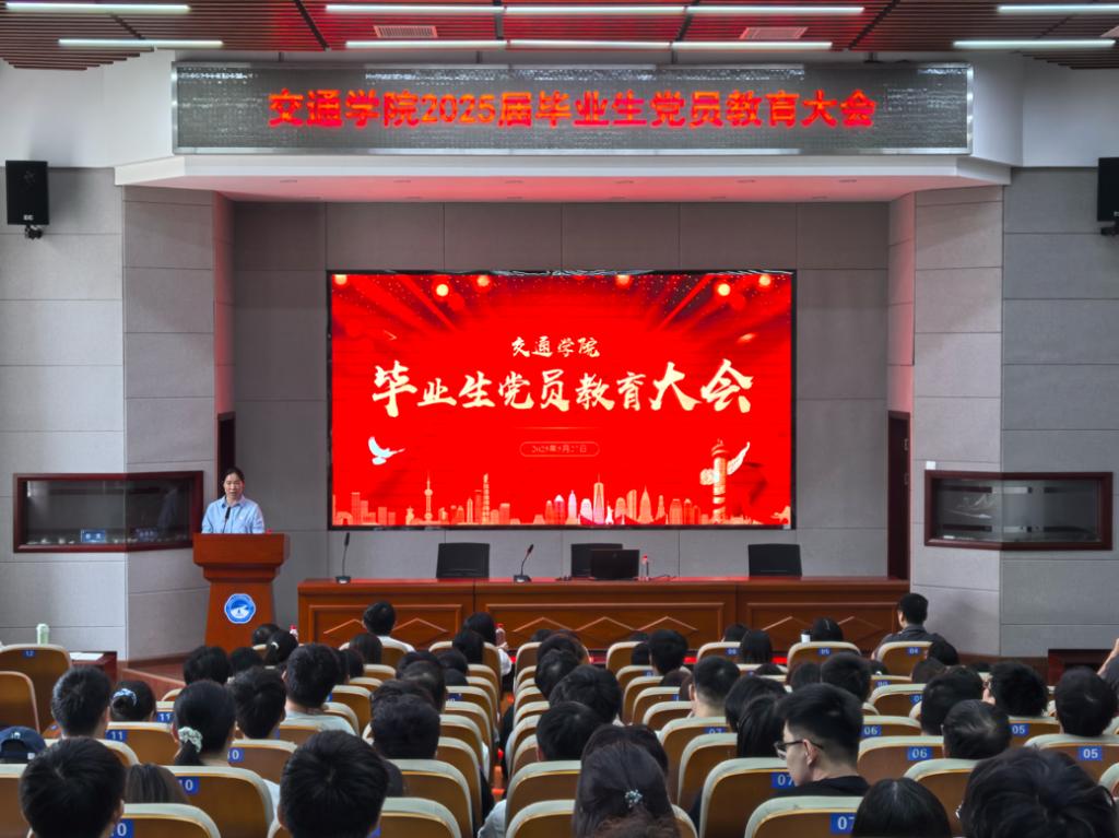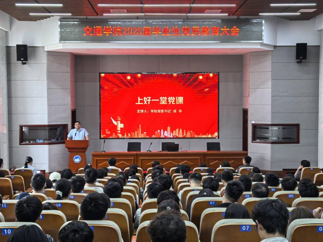 5月27日,交通学院2025届毕业生党员教育大会在工二交通科技报告厅举行,学院党委书记成华、研究生辅导员李文博及2025届全体毕业生党员参加,学生党总支副书记肖敏强主持会议。