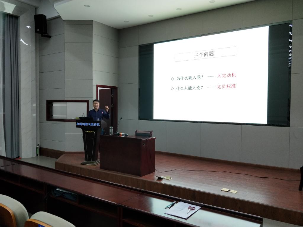 2019年5月7日晚,第33期入党积极分子第一次党课在工二B-301开展。本次党课由数学与计算科学学院党委书记毛光华讲授本次党课,主题为《入党流程和党员标准》,交通学院第三十三期入党积极分子培训班全体学员参加。