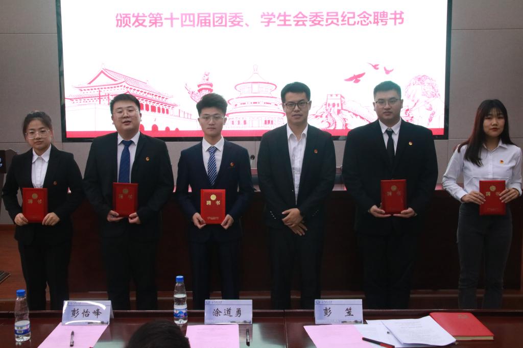 在正式会议中,韩雨晶介绍出席会议的领导及嘉宾,伴随着嘹亮的国歌声,大会正式开幕。首先,彭笠致开幕词,表达对莅临会议的领导的感谢,并衷心祝愿大会顺利召开。接着,各与会代表表决通过大会选举方法及团委委员和学生会委员代表候选人建议名单,并以无记名投票方式进行民主选举。随后,彭笠与刘禹分别代表第十四届团委、学生会做工作报告,并表决通过了《关于通过共青团永利集团88304官网交通运输工程学院第十四届委员会工作报告的决议(草案)》和《关于通过永利集团88304官网第十四届学生会工作报告的决议(草案)》。最终,经民主投票选举产生了由10名委员组成的共青团永利集团88304官网交通运输工程学院第十五届团委委员会和13名委员组成的交通运输工程学院第十五届学生会委员会。彭笠和涂道勇为各代表颁发聘书,会牌由刘禹交接给学生委员代表刘子为。