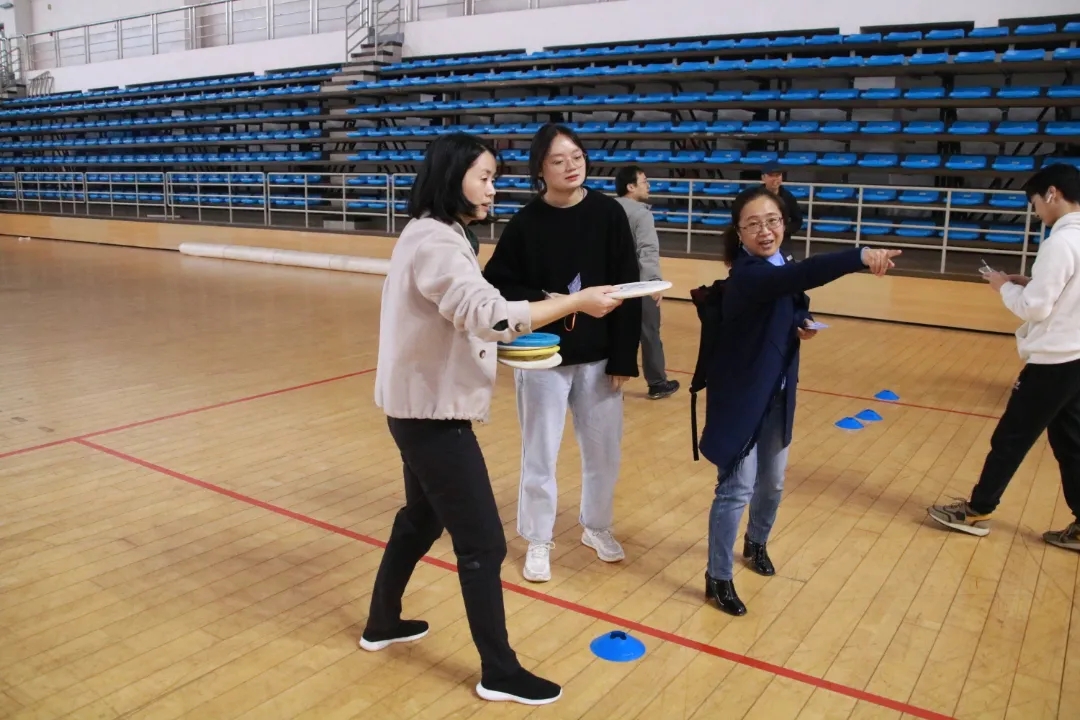 在单人项目中,参加御风飞翔和灌篮高手的选手根据风向和速度,不断地调整扔飞盘和气球的角度和力度,每个人都全神贯注,力争每次都能投进框内。运动会现场气氛欢快,师生们热情高涨、积极备赛,各种趣味运动打破了师生之间的界限,共享趣味运动带来的快乐与激情。场上掌声和呐喊声此起彼伏,各个项目中,教职工们相互鼓励,配合默契,你追我赶、奋勇争先。竞赛的氛围感染着每一个人,现场热闹非凡,一派欢乐祥和的景象。