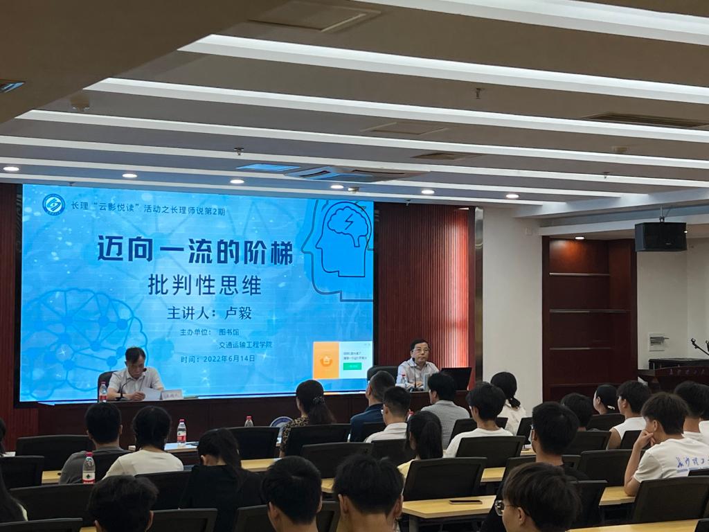 6月14日下午,交通学院共计70余名学生参加了“迈向一流的阶梯—批判性思维”主题讲座。此次讲座由永利集团88304官网图书馆主办,同时也是长理“云影悦读”活动之长理师说的第二期,交通学院教授卢毅主讲。