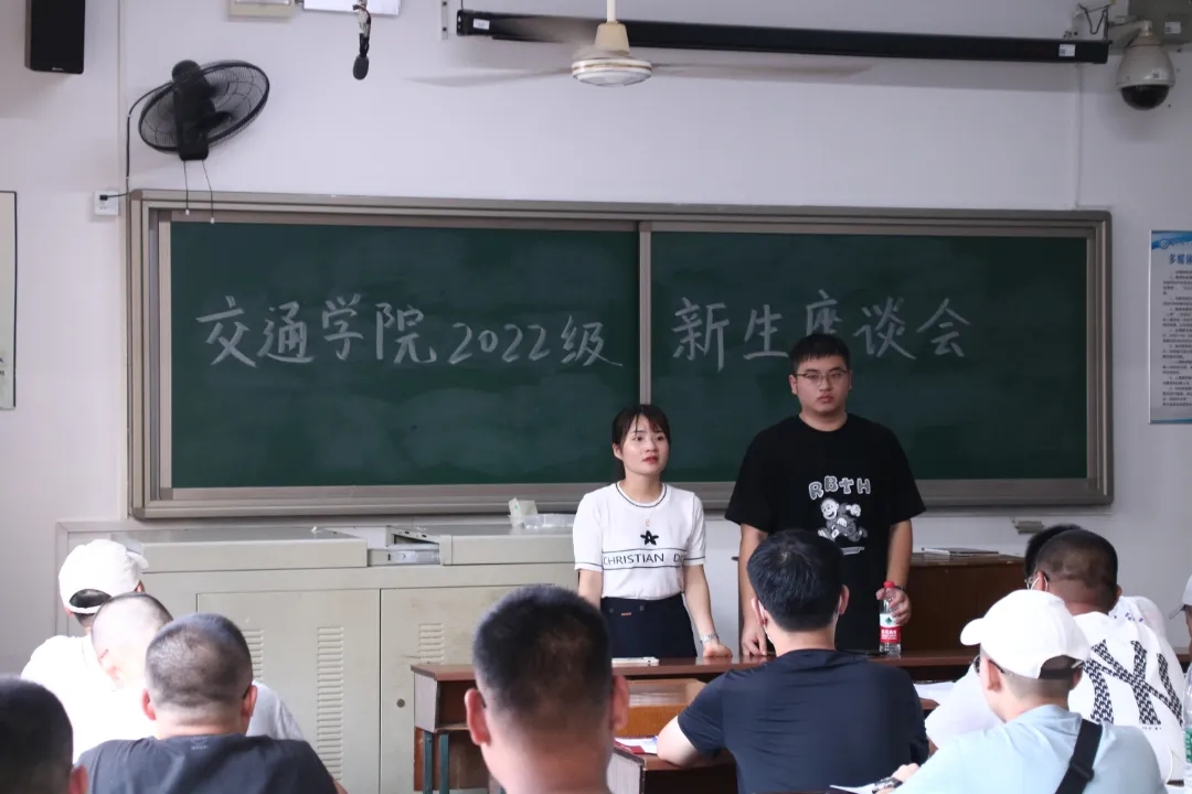 为让大一新生更快适应大学生活,融入到新集体之中,8月28日下午,交通学院于金盆岭校区十二教多间教室召开2022级新生第一次班会。下班党员主持会议,班主任与各班学生参加会议。