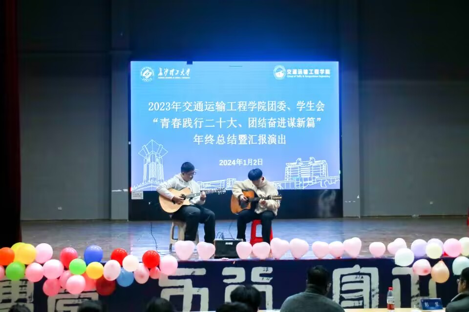 为提高团委、学生会内部凝聚力,增强团学成员的归属感,1月2日晚,交通学院于云塘校区创新创业园大学生科技报告厅举办2023年团委、学生会年终总结大会暨汇报演出,本次活动由交通学院团学办公室主任黎佳慧主持,交通学院党委副书记涂道勇,团委书记彭笠,学工办辅导员刘禹、第十六届团委、学生会委员出席,交通学院第十七届团委、学生会全体成员参加。