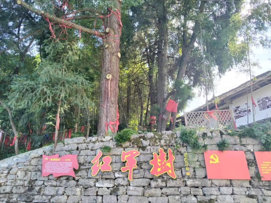 实践团沿着革命先驱贺龙将军的足迹,重温了1928年4月2日工农革命军在桑植起义的壮举。在贺龙将军的领导下,200余名战士在堰垭地区整编,正式成立了红四军。为了纪念这段历史,三合界村的居民将一棵古老的油松树命名为“红军树”,象征着贺龙将军及其部队的不朽功绩。“我们桑植人民是勇敢的人民,保家卫国的人民。”站在红缨烈烈的古树下,村民王玉林感慨道。