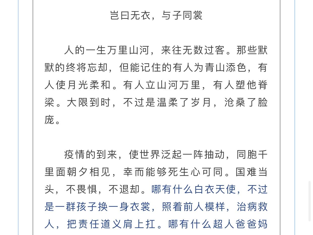 活动中,同学们提交的作品里有表白祖国的三行情书、有描写抗疫场景的短篇散文、有弘扬抗疫精神的现代诗词,这些作品字里行间洋溢着真情实感,也体现了在疫情期间同学们克服疫情带来的恐惧与焦虑,在疫情防控的同时也保护好自己的心情使其不“感冒”,在休息在家的时间里充实自我,使心理更加强大,达到了本次活动的目的。