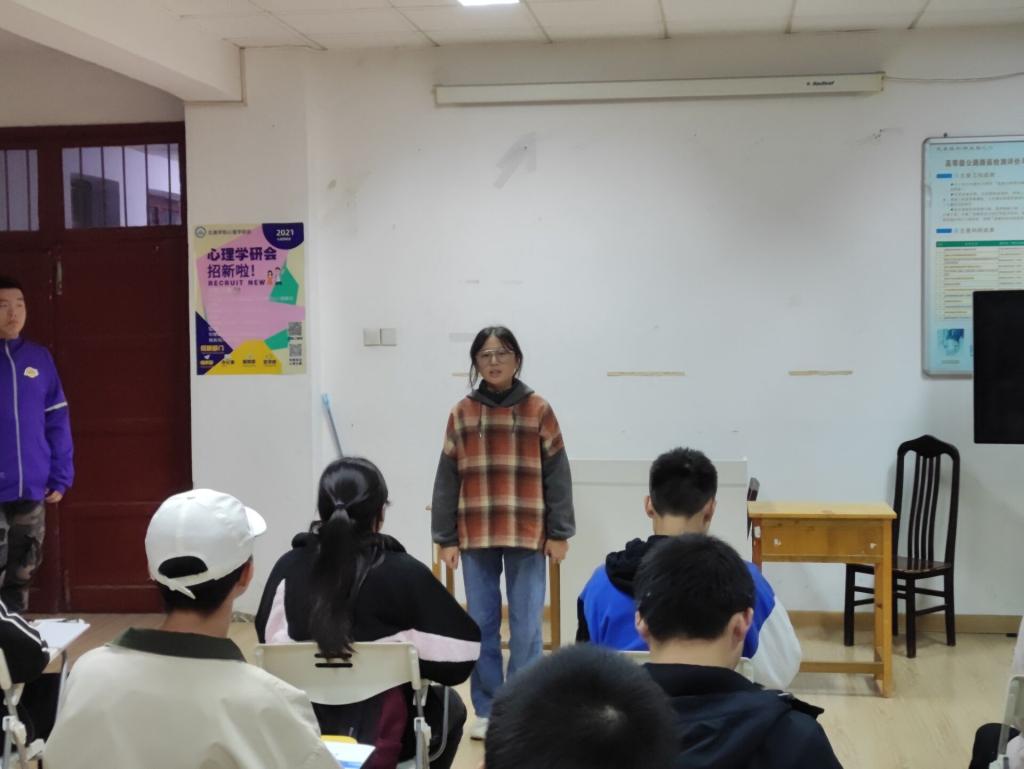 10月26日下午,交通学院心理学研会于金盆岭校区十教2-B开展朋辈互助心理健康知识培训会。20级各班心理委员及寝室长参加此次培训会,宣传部部长李佳欣担任主讲人。