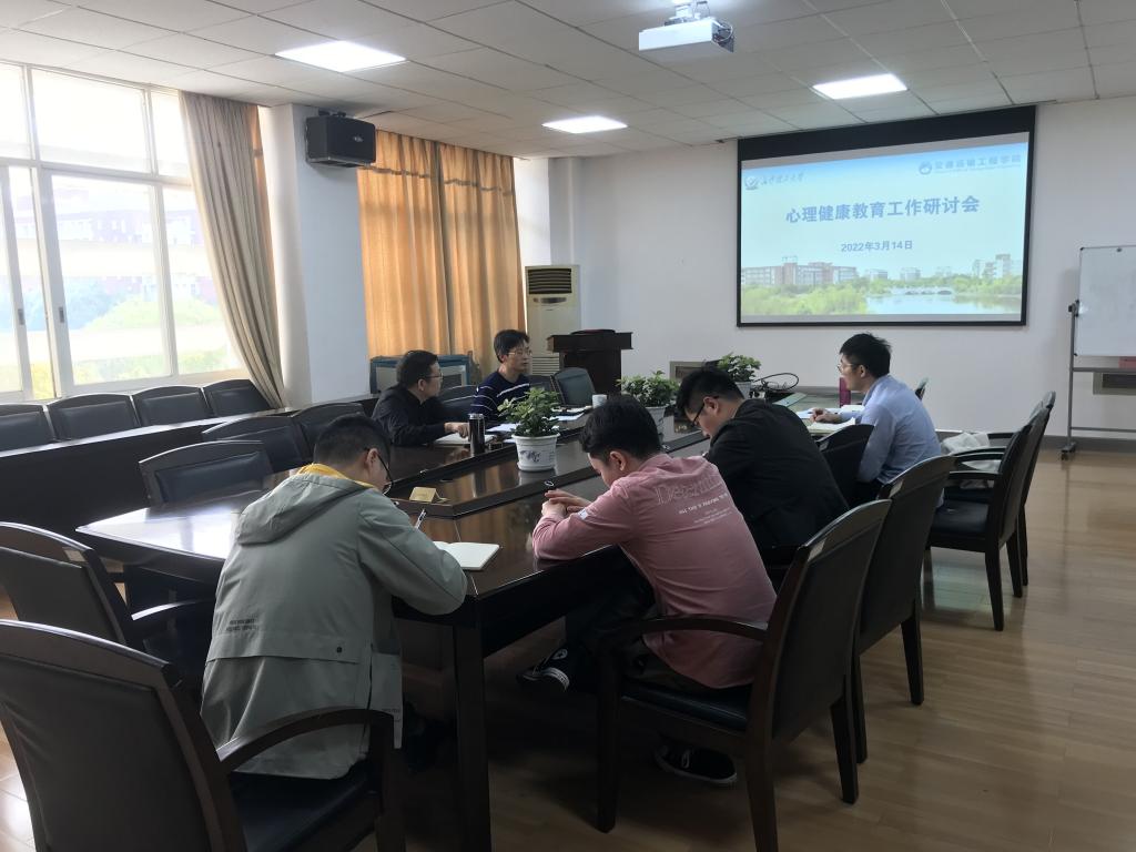 3月14日,交通学院在工二B413开展心理健康教育工作研讨会,院党委书记刘朝辉、党委副书记涂道勇、学工办全体辅导员参加。