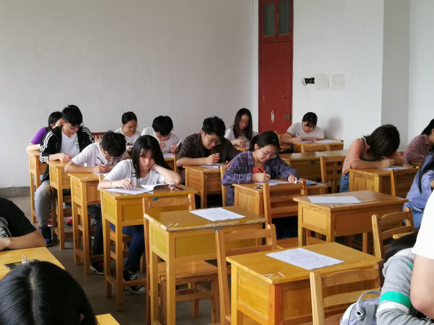 本次初赛试题分为单选题、不定项选择题、判断题和附加题。在考试开始后,每个队伍的同学开始奋笔疾书,为自己的队伍拼搏。期间工作人员认真巡视,同学们表现优异,从容淡定,考场秩序井然。