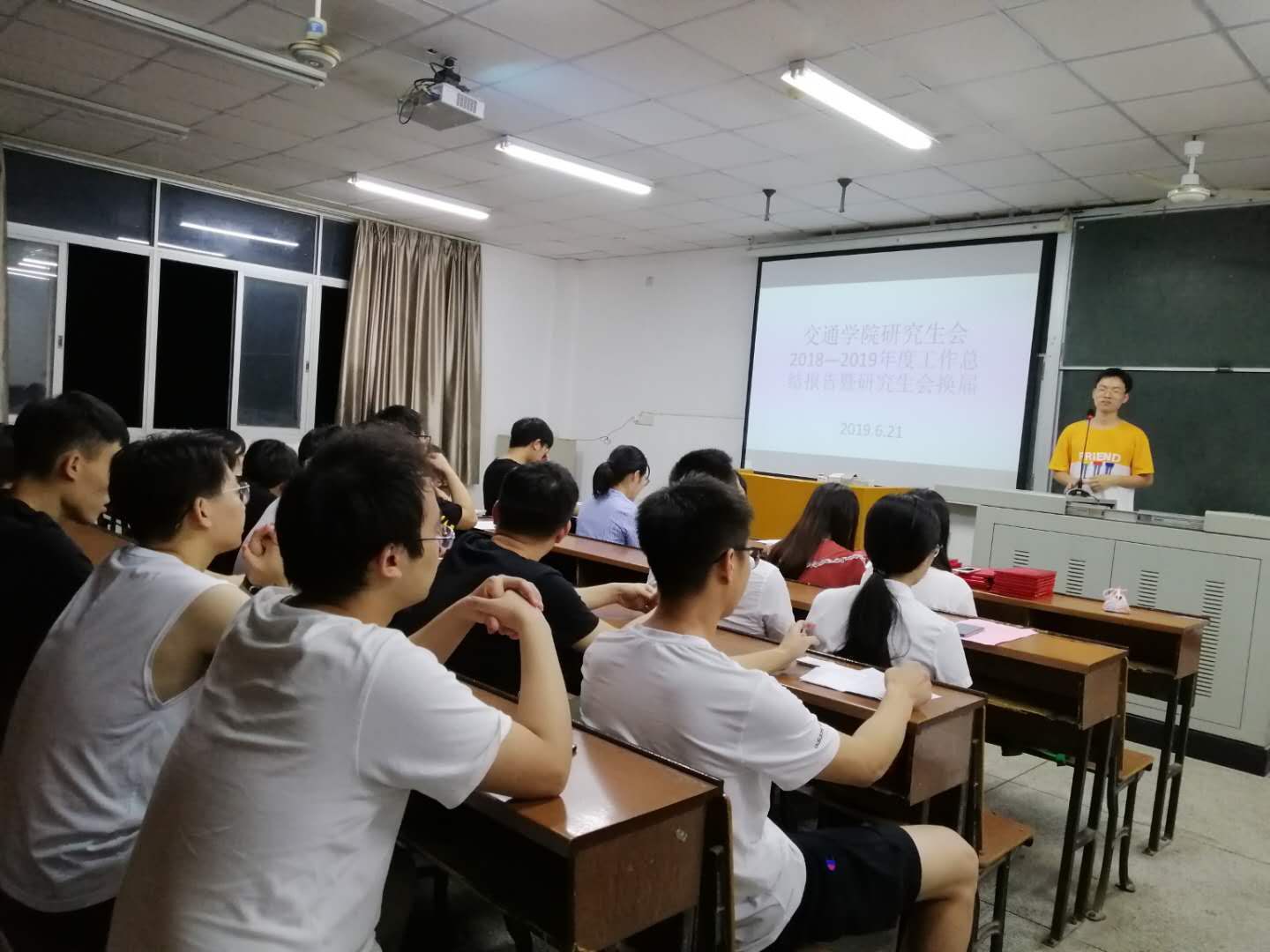 6月23日晚7点,交通学院研究生会在金盆岭4教409教室召开2018-2019年度总结报告暨研究生换届大会。会议由院团委副书记罗靖主持,研究生辅导员汪招霞、校研究生会代表及院研究生会全体成员参加此次会议。