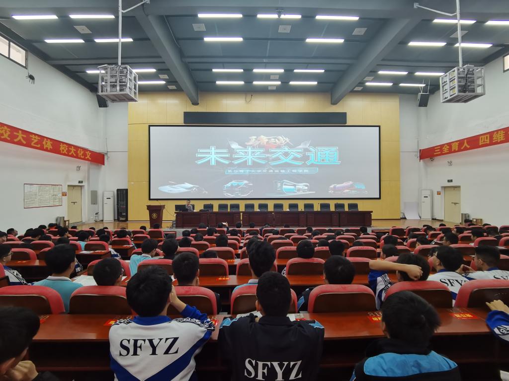 期间,史振宁以“未来交通”为主题,为两所学校600多名高二学子开展了“交通强国”科普讲座。